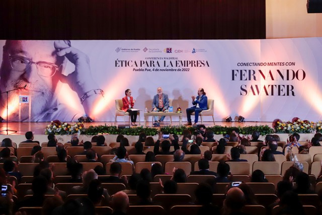 CIUDAD DE PUEBLA, Pue.- El gobernador Miguel Barbosa Huerta asistió a la conferencia magistral “Ética para la empresa” impartida por el filósofo español Fernando Savater, en la que participó la jefa de gobierno de la Ciudad de México, Claudia Sheinbaum Pardo y que fue moderada por Ángel Xolocotzi Yáñez, director de la Facultad de Filosofía y Letras de la BUAP.