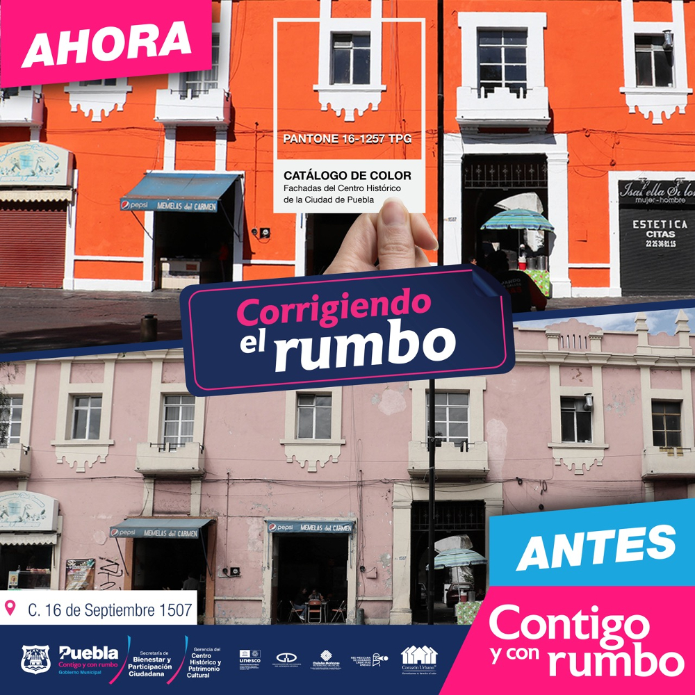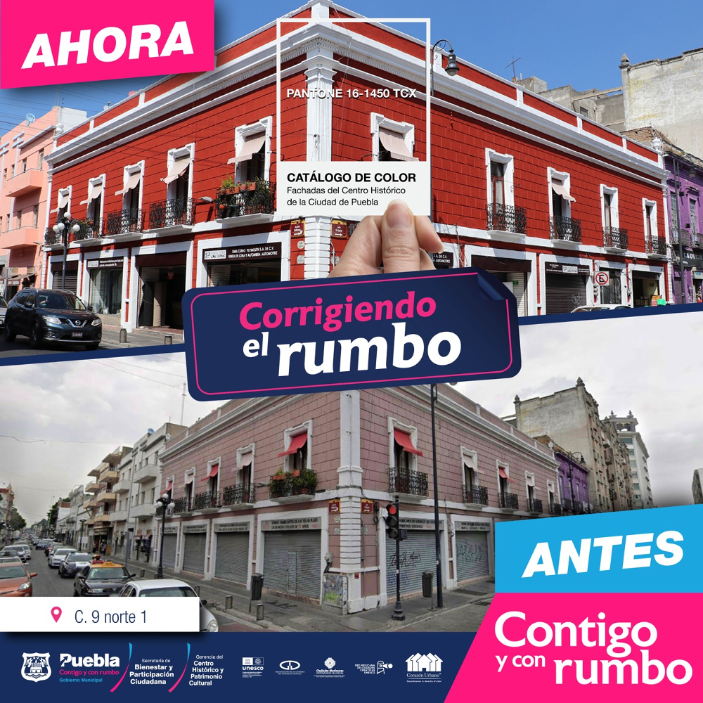 La mejora de la imagen urbana del Centro Histórico continúa por buen rumbo con los trabajos de pintura realizados por el Ayuntamiento de Puebla que preside Eduardo Rivera Pérez, en colaboración con la Asociación Civil ‘Corazón Urbano’.