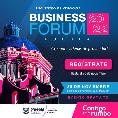 El miércoles 30 de noviembre, la capital poblana será punto de reunión para la realización del “Business Forum Puebla 2022, creando cadenas de proveeduría”, con la finalidad de propiciar un espacio de vinculación de negocios entre empresas compradoras y empresas proveedoras de bienes y servicios.