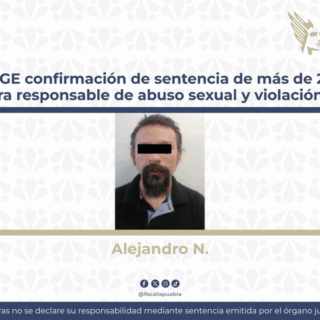 La Fiscalía General del Estado de Puebla logró que quedara firme la sentencia de 42 años, 6 meses de prisión, dictada contra Margarito N., por el delito de feminicidio, luego...