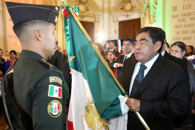 En compañía de la presidenta honoraria del Patronato del SEDIF, Rosario Orozco Caballero y el presidente municipal de Puebla, Eduardo Rivera Pérez, el mandatario arengó a las y los héroes nacionales como Miguel Hidalgo y Costilla, Josefa Ortiz de Domínguez y José María Morelos y Pavón, además de Benito Juárez, el general Ignacio Zaragoza, así como Aquiles, Carmen, Máximo y Natalia Serdán.