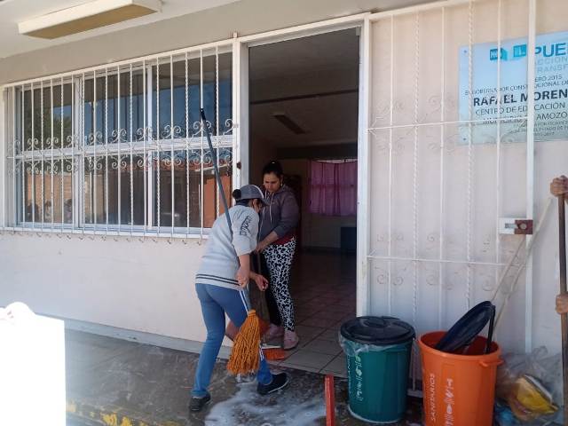 Amozoc, Puebla. Habitantes de la colonia Tepeyac,en Amozoc, realizaron una faena en el preescolar “Tlamalistli” para mantener en buenas condiciones la institución para este regreso a clases, informó Rosario Palacios, directora de la institución.