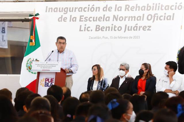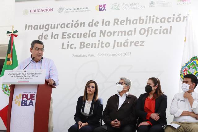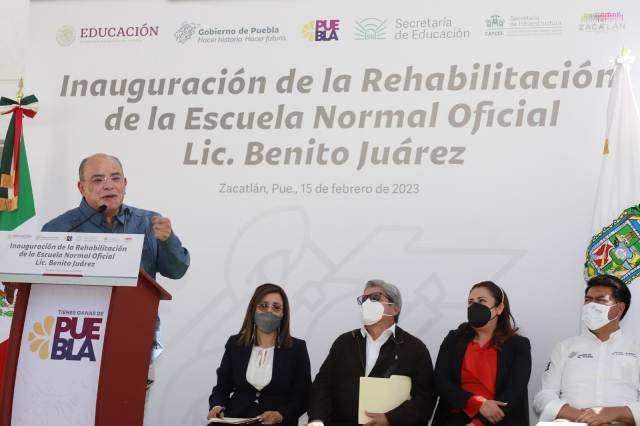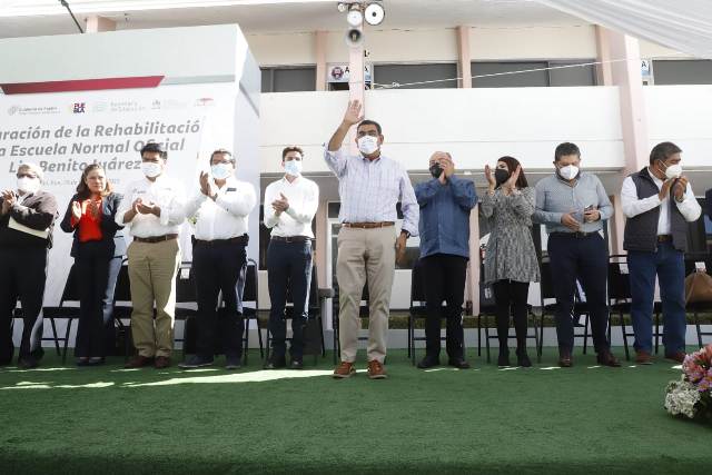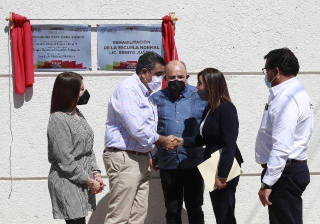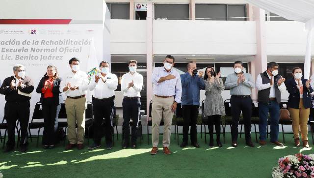 Al inaugurar la rehabilitación de la Escuela Normal Oficial “Lic. Benito Juárez”, el mandatario reconoció el esfuerzo que maestras y maestros realizan en la formación de la comunidad estudiantil, pues a través de su trabajo marcan la vida de los jóvenes.