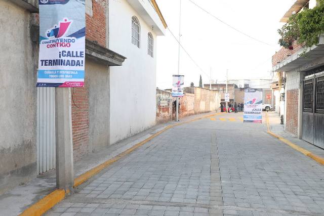 - Con una inversión de 2.2 millones de pesos, la administración de Eduardo Rivera Pérez hizo equipo con la ciudadanía para adoquinar dos mil 917 metros cuadrados de calles.