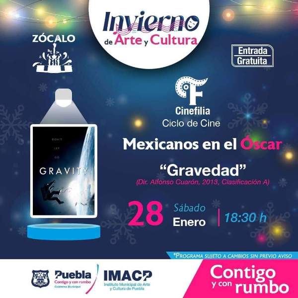 - En el Zócalo de la ciudad este sábado 28 de enero se presenta el especial Mexicanos en el Óscar: en esta ocasión con Gravedad de Alfonso Cuarón.