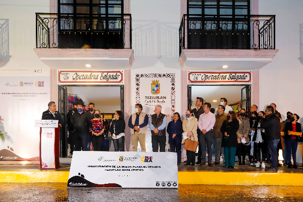 El gobernador Sergio Salomón Céspedes Peregrina inauguró la Plaza “El Venado”, la cual fortalecerá las ventas de las y los comerciantes de este municipio.