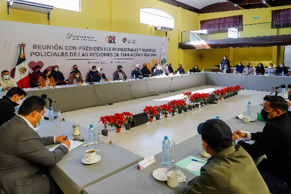 En el encuentro estuvieron presentes el titular de la Secretaría de Gobernación (SEGOB), Julio Huerta Gómez; presidentes municipales de las regiones de Tehuacán y Ajalpan, así como mandos policiales.
