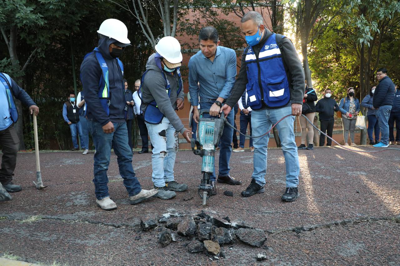 Acompañaron el arranque de este proyecto de rehabilitación Myriam Arabian Couttolenc, Secretaria de Medio Ambiente; Edgar Vélez Tirado, Secretario de Movilidad e Infraestructura; Xóchitl Zárate Tejeda, Secretaria de Servicios Públicos; Antonio Iriarte González, Director del Instituto Municipal del Deporte; Carlos Guerrero Núñez, Presidente Auxiliar de San Francisco Totimehuacán; y Armando Roque Lazcano, Jefe de Policía Zona 7.