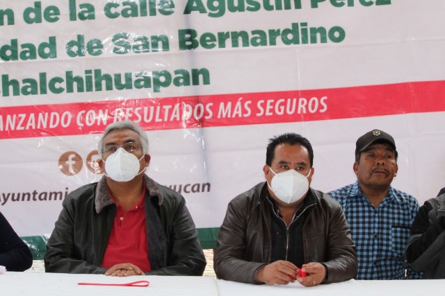 Ocoyucan, Pue. El presidente municipal de Ocoyucan, Rosendo Morales Sánchez, en compañía de los habitantes de la junta auxiliar de San Bernardino Chalchihuapan, dieron el corte de listón en la inauguración de la pavimentación y obras complementarias de la calle Agustín Pérez.