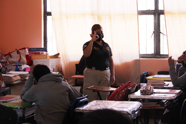 Ocoyucan, Puebla. A través de la Secretaría de Seguridad Pública de Ocoyucan la Dirección de Prevención del Delito impartió una plática a estudiantes de la Escuela Telesecundaria Juan N. Navarro, perteneciente a la cabecera municipal.