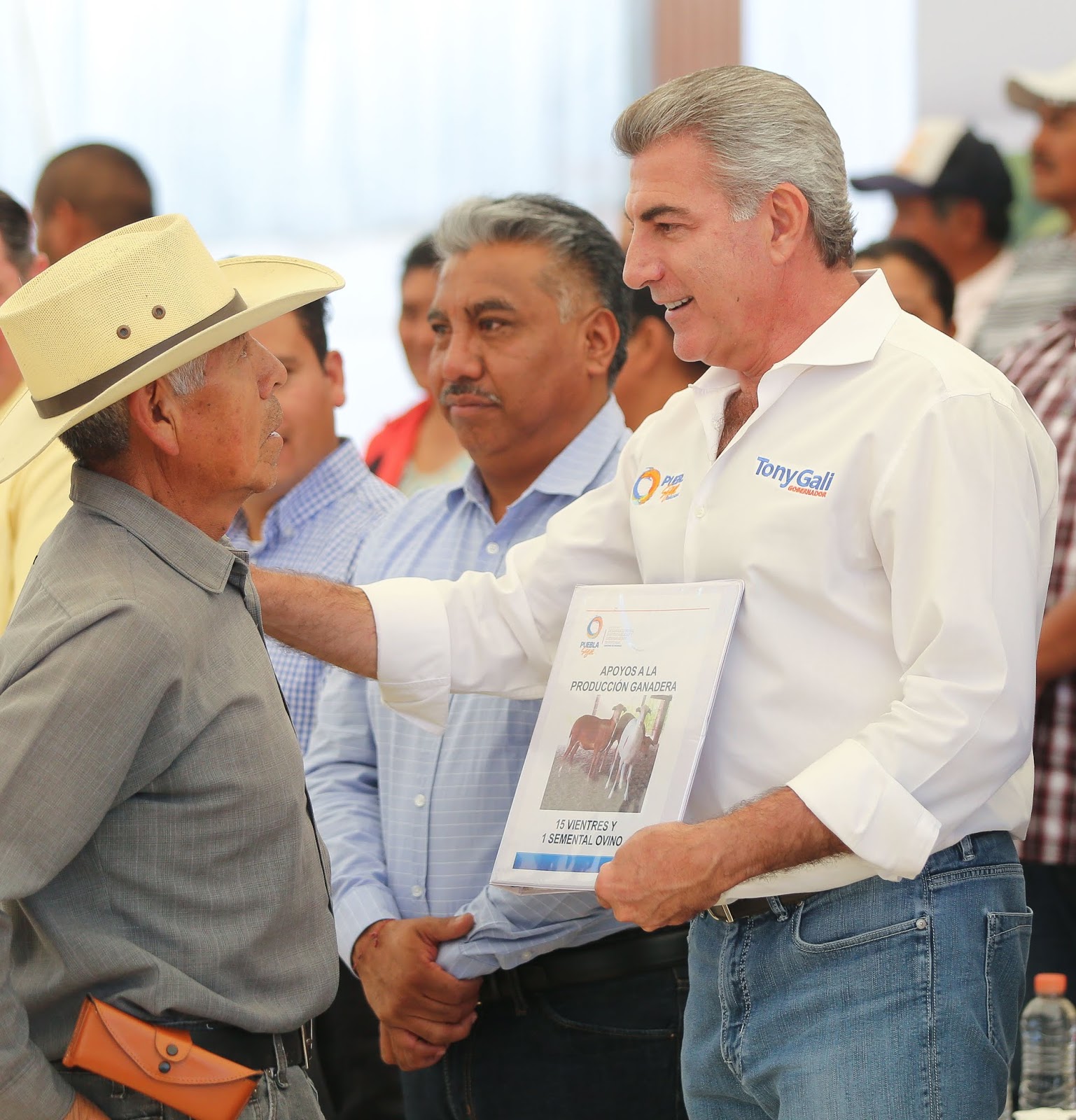 Tony Gali mencionó que los campesinos recibieron 63.3 toneladas y más de mil litros de fertilizante, 30 vientres y 2 sementales ovinos, mil 656 paquetes de herramienta agropecuaria y mil 250 calentadores solares.