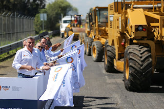 Huejotzingo, Puebla.- El gobernador Tony Gali dio inicio a los trabajos de rehabilitación del Ramal al Aeropuerto Internacional Hermanos Serdán y de las gasas de acceso a la carretera federal y autopista México-Puebla, que comprende una longitud de 9.1 kilómetros y una inversión aproximada de 50 millones de pesos.