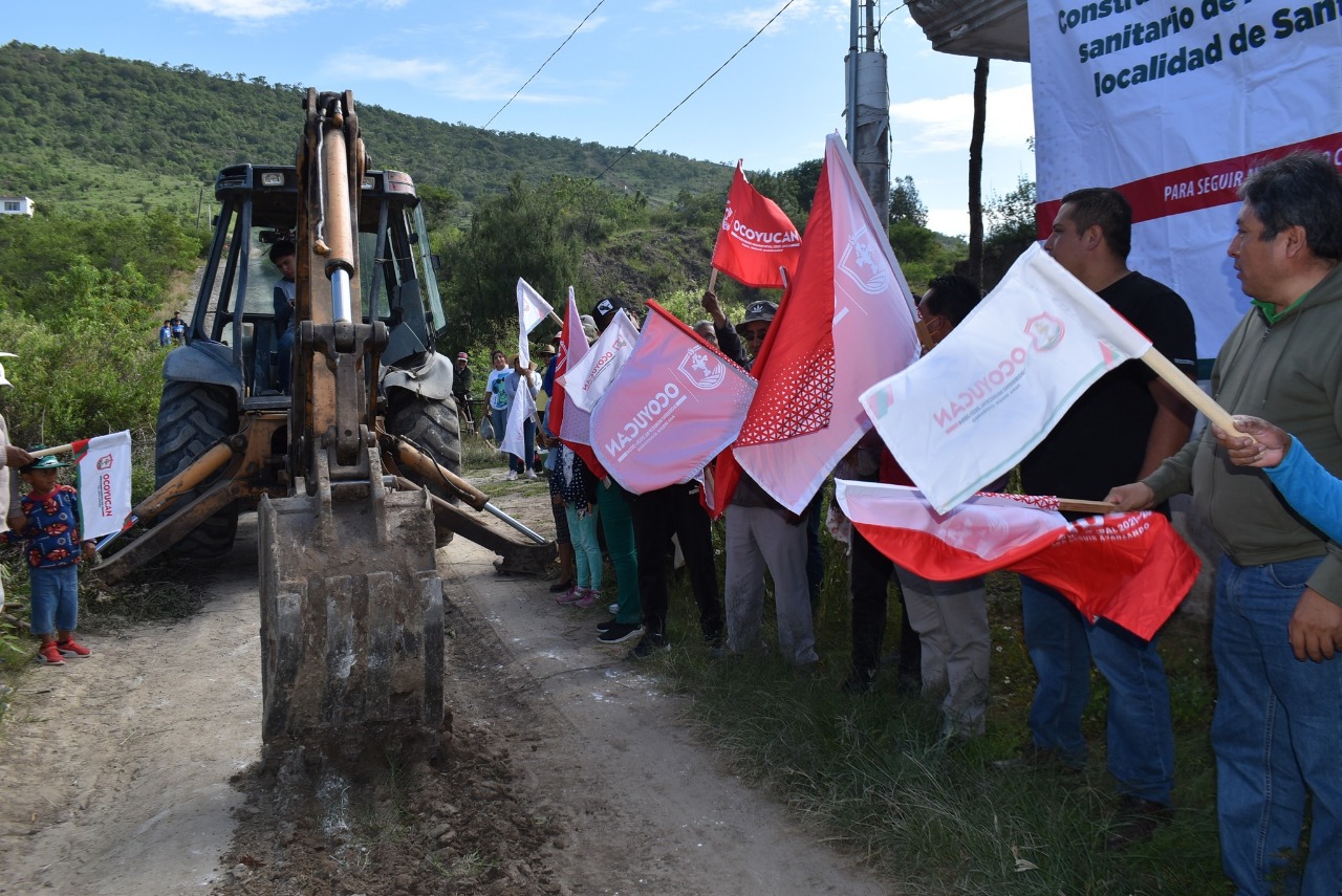 Ocoyucan, Puebla. El Presidente municipal de Ocoyucan Rosendo Morales Sánchez, acompañado de habitantes de la localidad de Santiago Coltzingo, dio el banderazo de arranque de obra para la introducción de drenaje sanitario en la Privada Atlixco.