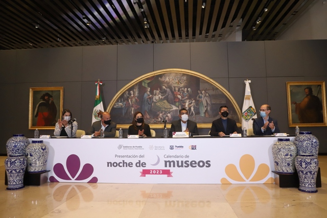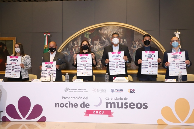 SAN ANDRÉS CHOLULA, Pue.- Al destacar que la cultura es un derecho y que es responsabilidad de las autoridades de los tres órdenes de gobierno el acercarla a la población, el mandatario Sergio Salomón Céspedes Peregrina presentó el calendario oficial de la “Noche de Museos 2023”.