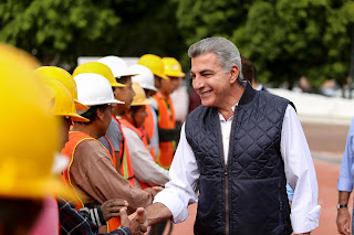 Puebla, Puebla. – El gobernador Tony Gali y el alcalde Luis Banck supervisaron los trabajos de rehabilitación y mantenimiento que se ejecutan en el Paseo Nicolás Bravo, los cuales registran un avance del 45 por ciento.