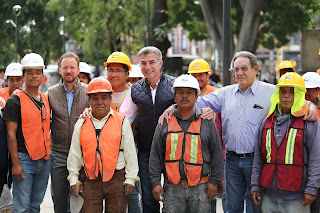 Puebla, Puebla. – El gobernador Tony Gali y el alcalde Luis Banck supervisaron los trabajos de rehabilitación y mantenimiento que se ejecutan en el Paseo Nicolás Bravo, los cuales registran un avance del 45 por ciento.