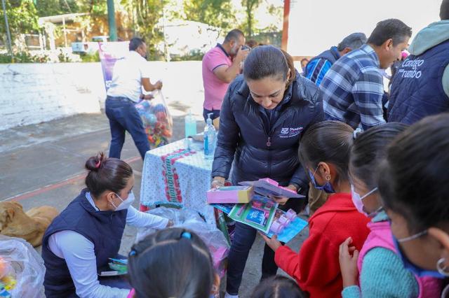 Así, entre las sonrisas, alegría y gozo de las y los pequeños de estas localidades, Ortiz Pérez agradeció a las madres y padres de familia que se dieron cita en cada uno de los puntos de entrega por permitirle al SMDIF el acercarles estos obsequios, ya que para el Ayuntamiento las infancias son el motor y la inspiración que impulsa día a día el quehacer por corregir el rumbo de Puebla, expresó.