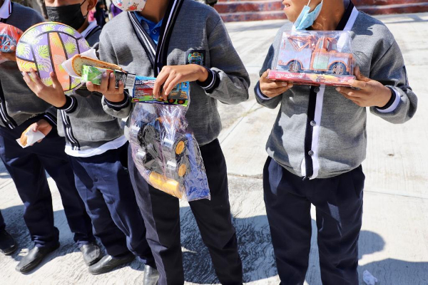 Esta entrega de juguetes se llevó a cabo gracias al donativo de la empresa Bachoco, uno de los principales aliados estratégicos del Gobierno Municipal, que encabeza Eduardo Rivera Pérez, permitiendo que la niñez de esta comunidad en situación de atención prioritaria disfrutara de la tradicional rosca de reyes y compartiera momentos de felicidad, emoción y diversión con sus compañeros y familia.
