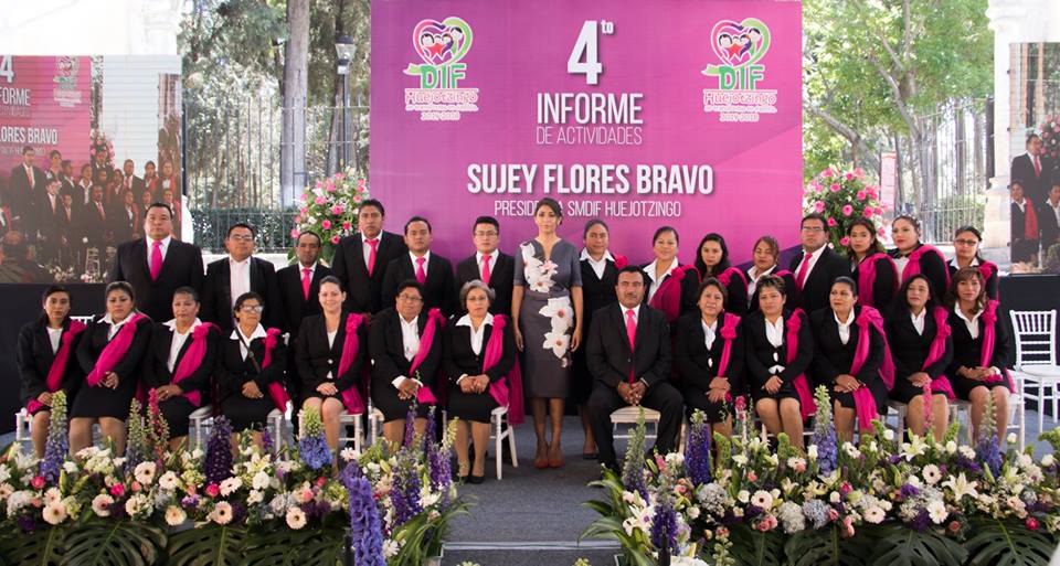 Huejotzingo.- Ante la presencia de cientos de personas, la presidenta del Sistema Municipal de Desarrollo Integral de la Familia Huejotzingo; Sujey Flores Bravo, rindió su 4° Informe de Labores, en donde dio a conocer las principales acciones de su gestión en apoyo de los grupos más vulnerables del municipio, como lo son: niños, adultos mayores y personas con discapacidad.