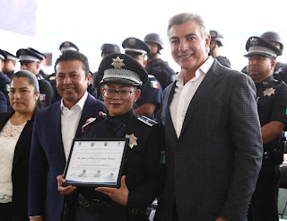 El mandatario reconoció la labor que realizan los elementos de esta corporación y celebró la promoción de grados policiales, así como los estímulos económicos que se otorgaron por acciones destacadas y constancias de capacitación.