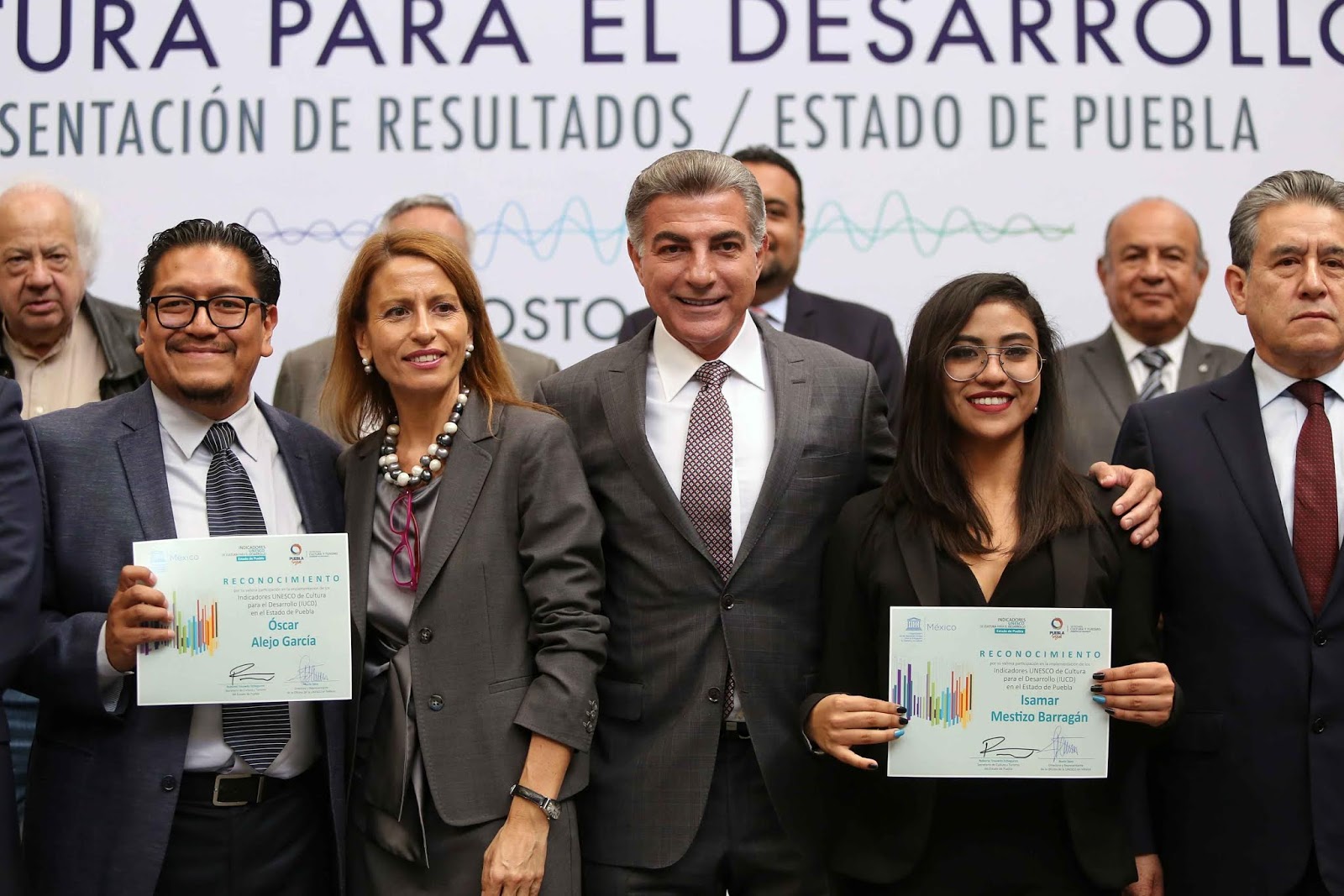 Durante el evento, Tony Gali y Nuria Sanz reconocieron al subdelegado del Instituto Nacional de Antropología e Historia (INAH) en Puebla, Rafael Barquero; a la analista de la Secretaría de Competitividad, Trabajo y Desarrollo Económico del estado, Isamar Mestiza y al subdirector de Formación y Desarrollo Cultural, Óscar Alejo, por su participación en la elaboración del estudio.