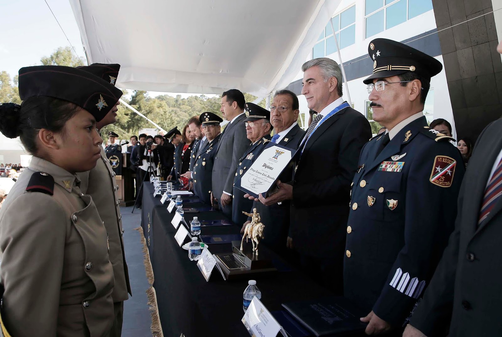 Al encabezar la ceremonia de graduación «Paladines de la Lealtad» de la Academia Militarizada Ignacio Zaragoza, en compañía del Presidente de la Comisión de Defensa en la Sexagésima Tercera Legislatura, General Virgilio Méndez, y del Comandante de la 25a. Zona Militar, Raúl Gámez, el Ejecutivo felicitó a los 99 alumnos que culminaron sus estudios.