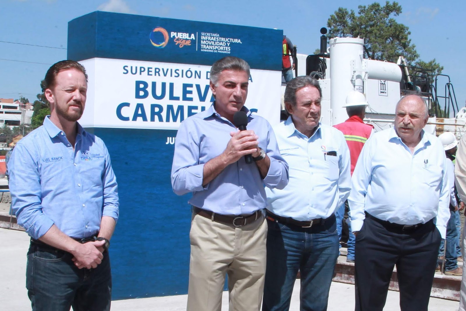 Puebla, Puebla. – El gobernador Tony Gali y el alcalde Luis Banck supervisaron los trabajos de construcción de los 5.5 kilómetros del bulevar Carmelitas, que registra un avance superior al 50 por ciento y beneficiará a un millón 500 mil habitantes del sur de la capital.